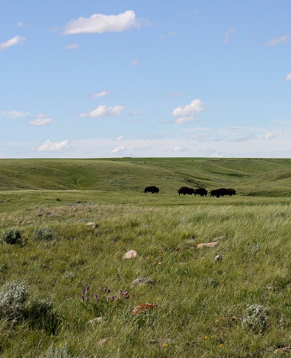 IMG_3435 - CopyGrasslands is a long way from anywhere. It’s one of few dark sky preserves in the world. It’s a huge expanse of hills and draws covered in grasses and shrubs and lichens and wildflowers whose numbers I can’t begin to count. There are more than 12,000 archeological sites in the area, including teepee rings, effigies and burial sites. It is wondrous place, impossible, really, to comprehend. But that’s the point. It is only when you look out over the vista and then get up close and personal with the bison through the knowledge Wes offers, that somehow you too can feel it, just a little. A sense of history that remains little marked by the present, a feeling that here we have something awesome in the truest sense of that over-used word, a national treasure.