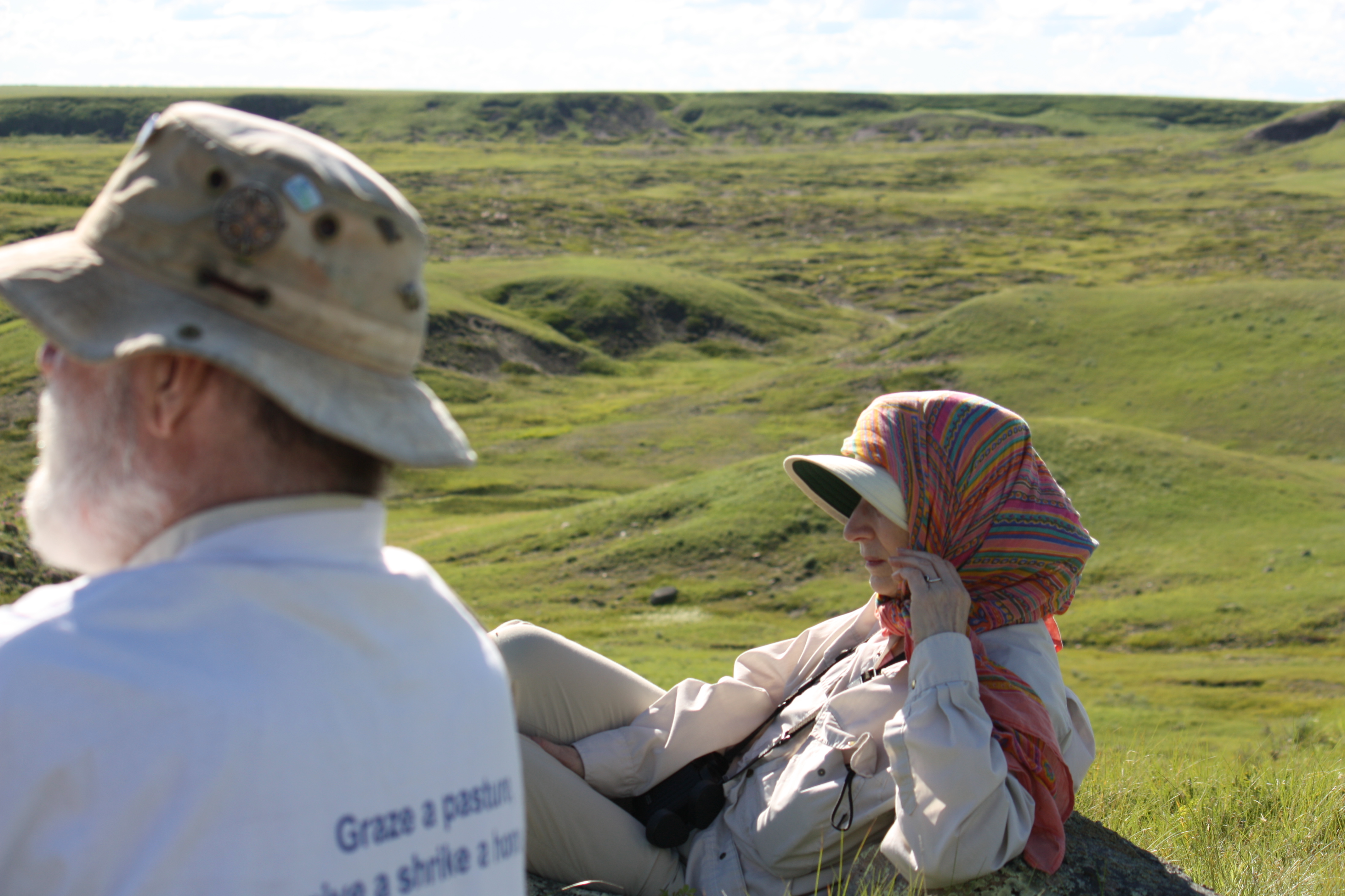 Okay so that title is a shameless attempt at self-promotion. And to be honest, there were a dozen or so other people with us, including fellow writer Shelley Banks who also takes great photographs like the one here. Still, I was so fortunate to be invited to spend two days with Atwood and her partner, fellow writer and decorated conservationist, Graeme Gibson touring Grasslands National Park and the PFRA community pastures in Southwest Saskatchewan. The pair, along with other representatives of BirdLife International were invited by the group Public Pasture-Public Interest, an affiliation of ranchers, conservationists, First Nations people, scientists and naturalists hoping to convince governments to keep the community pastures under some form of public management. They believe it’s the only way to save the ranchers who graze their cattle on them and the 32 species at risk that call them home. The issue is a complicated one, and I won’t say too much more about it because I’m doing some magazine work regarding this aspect of the tour.